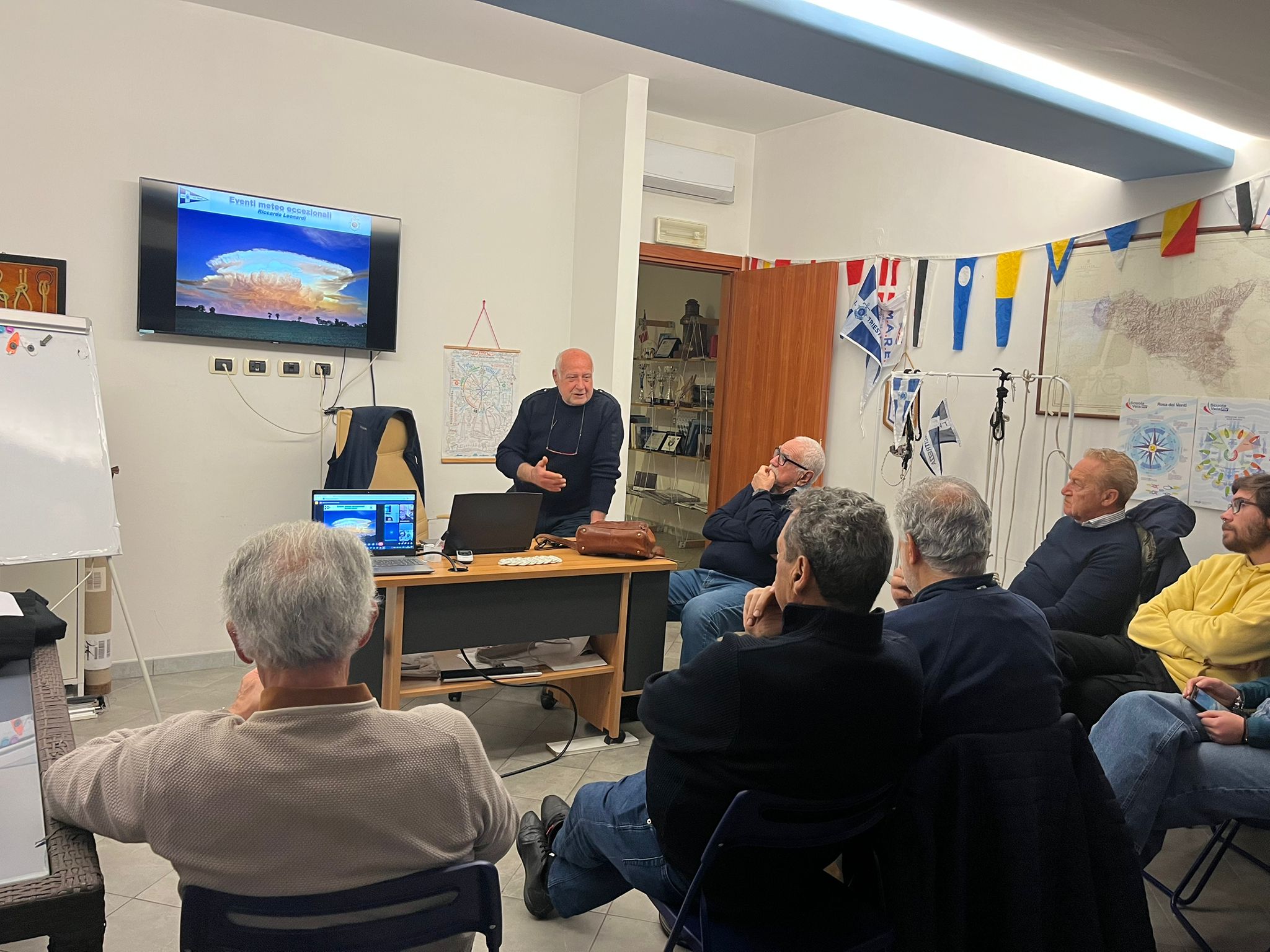 Con arguzia, ma nel rispetto del rigore scientifico, ha illustrato i fondamenti scientifici sui quali si basa la previsione dei fenomeni meteo, fornendo i primi elementi per la previsione locale dei fenomeni durante la navigazione.