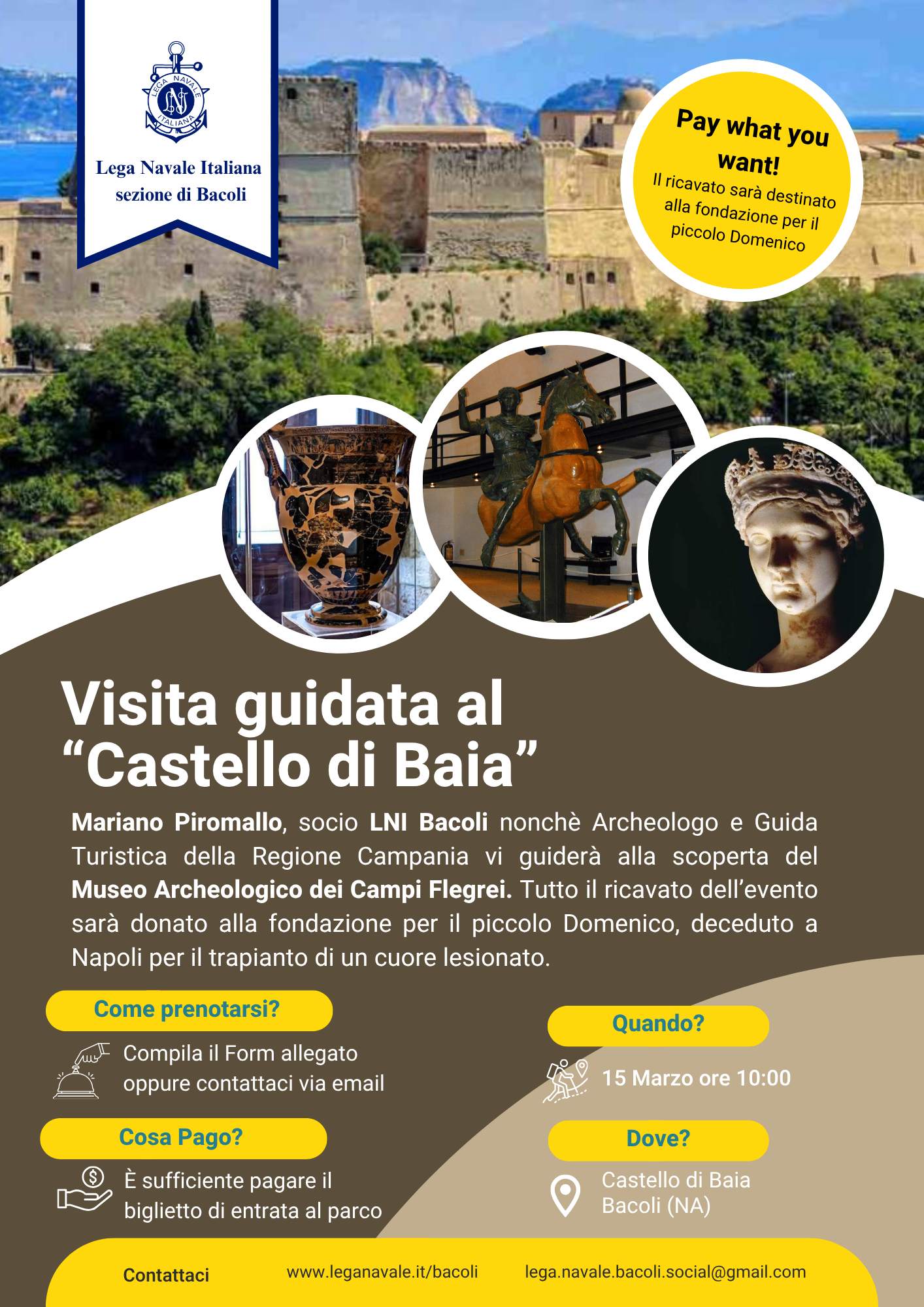 La Lega Navale Italiana – Sezione di Bacoli organizza una speciale visita guidata al Castello di Baia, alla scoperta del Museo Archeologico dei Campi Flegrei, accompagnati dall’archeologo e guida turistica Mariano Piromallo.