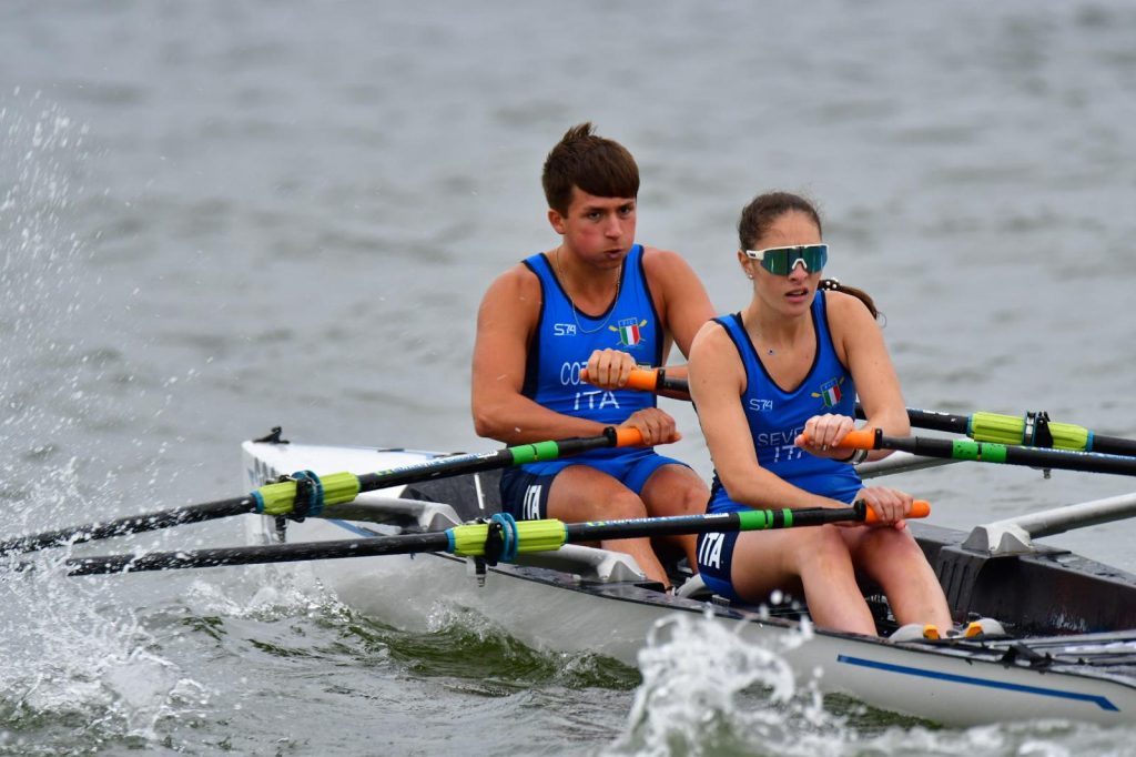 Medaglia d’oro, e anche il secondo titolo Continentale, è arrivata dal doppio under 19 misto di Lucio Cozzolino (CC Irno) e Azzurra Severini (LNI Barletta), che sale sul gradino più alto del podio dopo aver annullato le velleità della formazione spagnola. Le due medaglie di bronzo sono arrivate, infine, da Maria Lanciano (LNI Barletta) che, dopo aver fallito la finalissima del singolo under 19 femminile per colpa di una folata anomala di vento che l’ha rallentata, ha dominato la finalina per il terzo e quarto posto contro la Gran Bretagna, e dal doppio misto senior di Federico Ceccarino (CC Napoli) e Silvia Tripi (SC Elpis) che hanno superato nella parte finale la Spagna e vinto il bronzo al termine di un percorso sempre in crescendo.