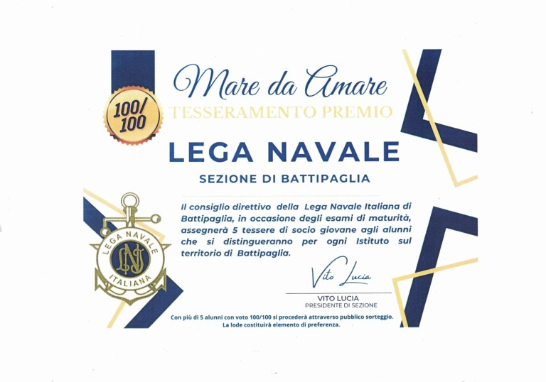 omaggio di 5 tessere socio per gli studenti che agli esami di maturità si sono distinti ( voto 100/100)