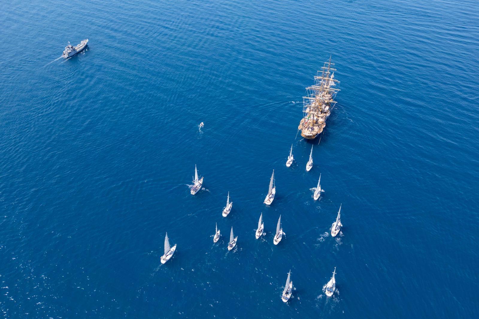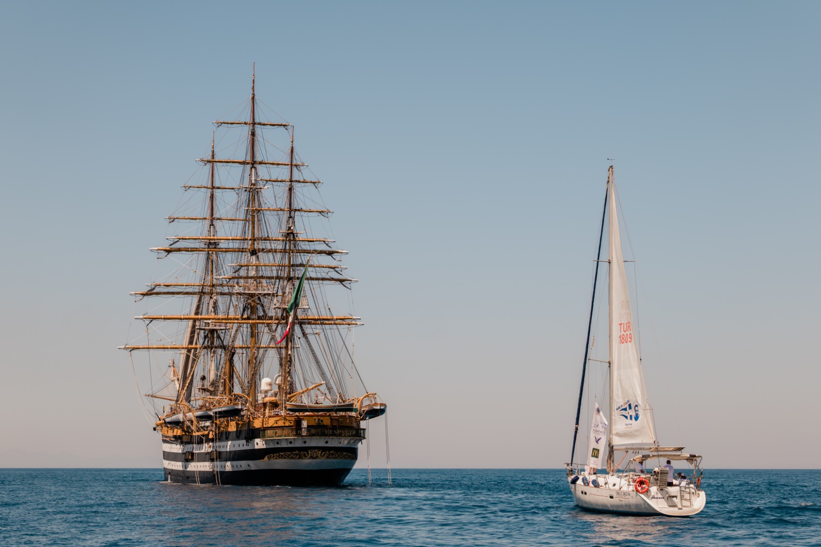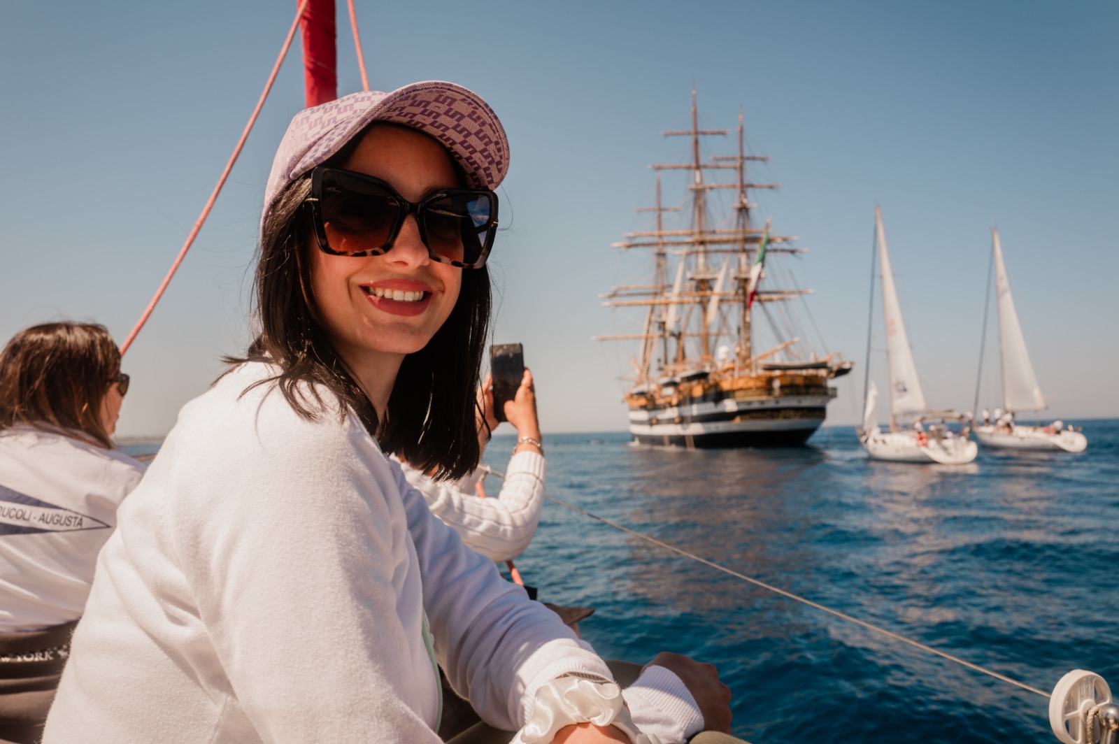 Incontro della nave della marina militare italiana Amerigo Vespucci e le Sezioni della Sicilia Orientale della Lega Navale Italiana a largo di Augusta.