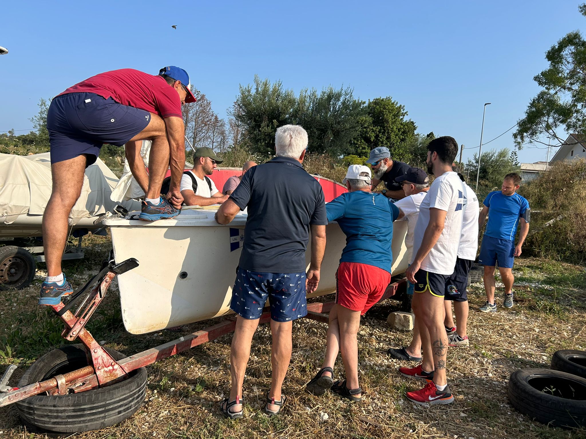 Oggi, con l'aiuto di 12 soci disponibili e volenterosi siamo riuscita a riportare il tridente nella sua posizione originaria, correttamente riposto sul carrello.