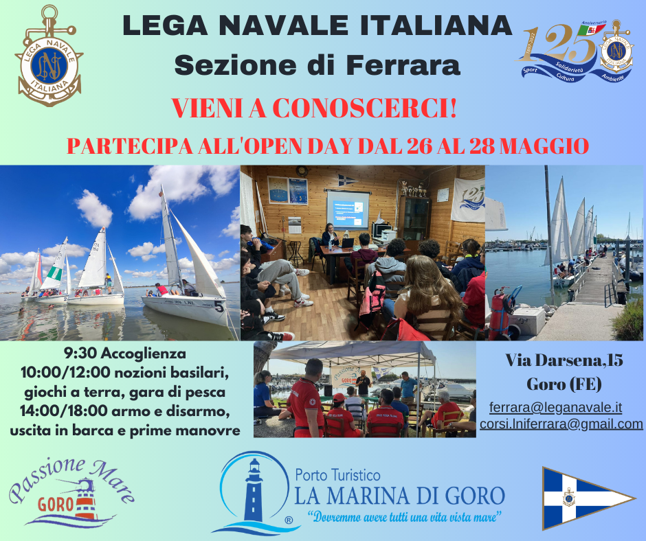 DAL 26 AL 28 MAGGIO LE PORTE DELLA LNI FERRARA SI APRONO A CHIUNQUE VOGLIA VENIRE A SCOPRIE IL MARE E LA VELA. PASSATE UN WEEKEND CON NOI, VENITE A TROVARCI! per info ferrara@leganavale.it