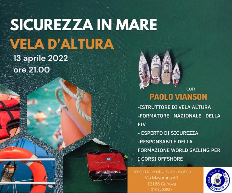 Mercoledì 13 aprile, presso la nostra sezione, si terrà un corso sulla sicurezza in mare per vela d'altura. Tutti i soci interessati, possono partecipare. Vi aspettiamo!