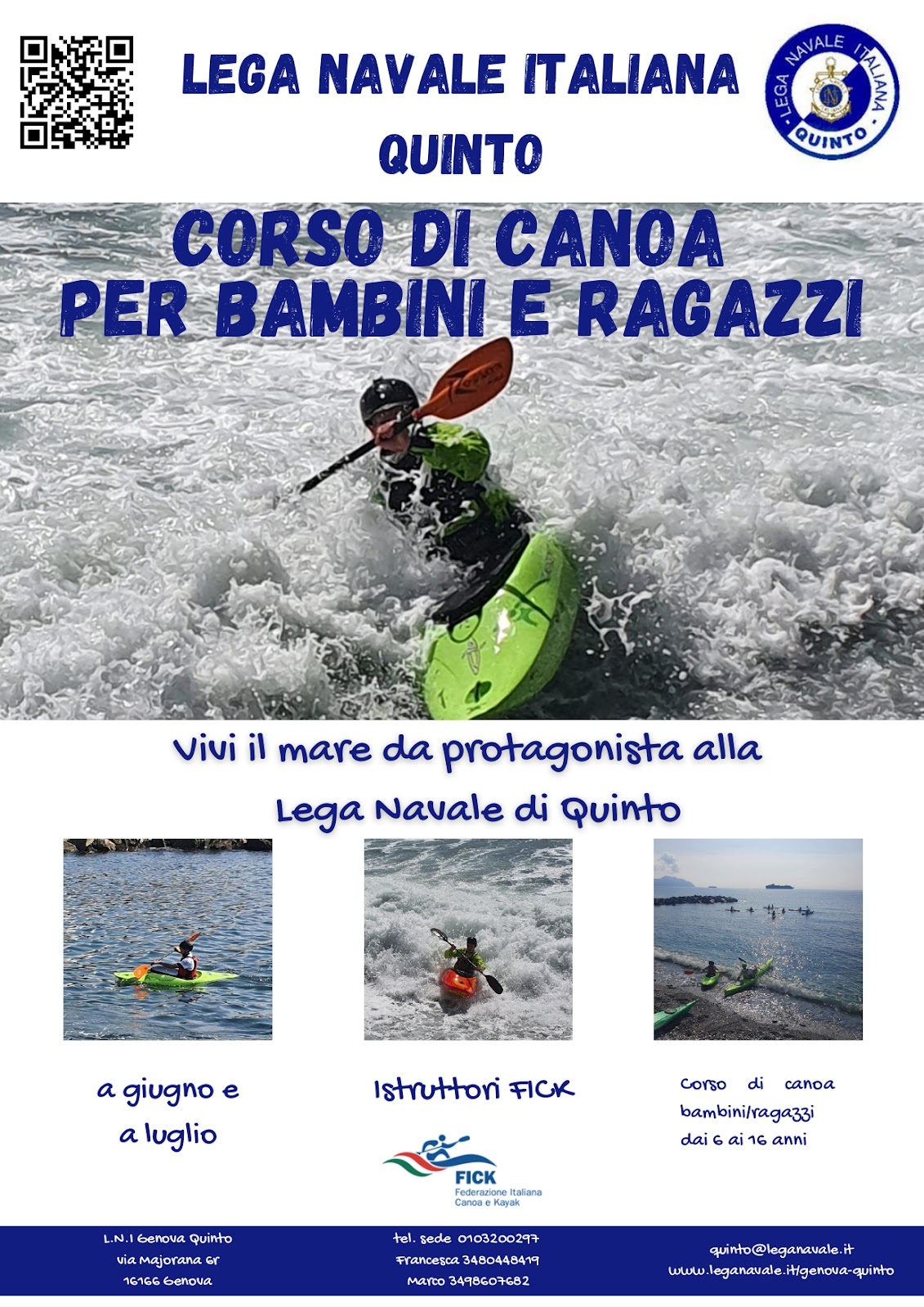Ripartono i corsi canoa , dedicati ai bambini/ragazzi, nella nostra sezione. I corsi inizieranno il 14 Giugno e saranno composti da 4 uscite totali il martedì e il giovedì..Per info e/o prenotazioni, contattale il numero 0103200297 (dal martedì al sabato dalle 9 alle 13), il numero di cellulare 3480448419 (Francesca) il numero 3498607682 (Marco), oppure mandate una email all'indirizzo : quinto@leganavale.it