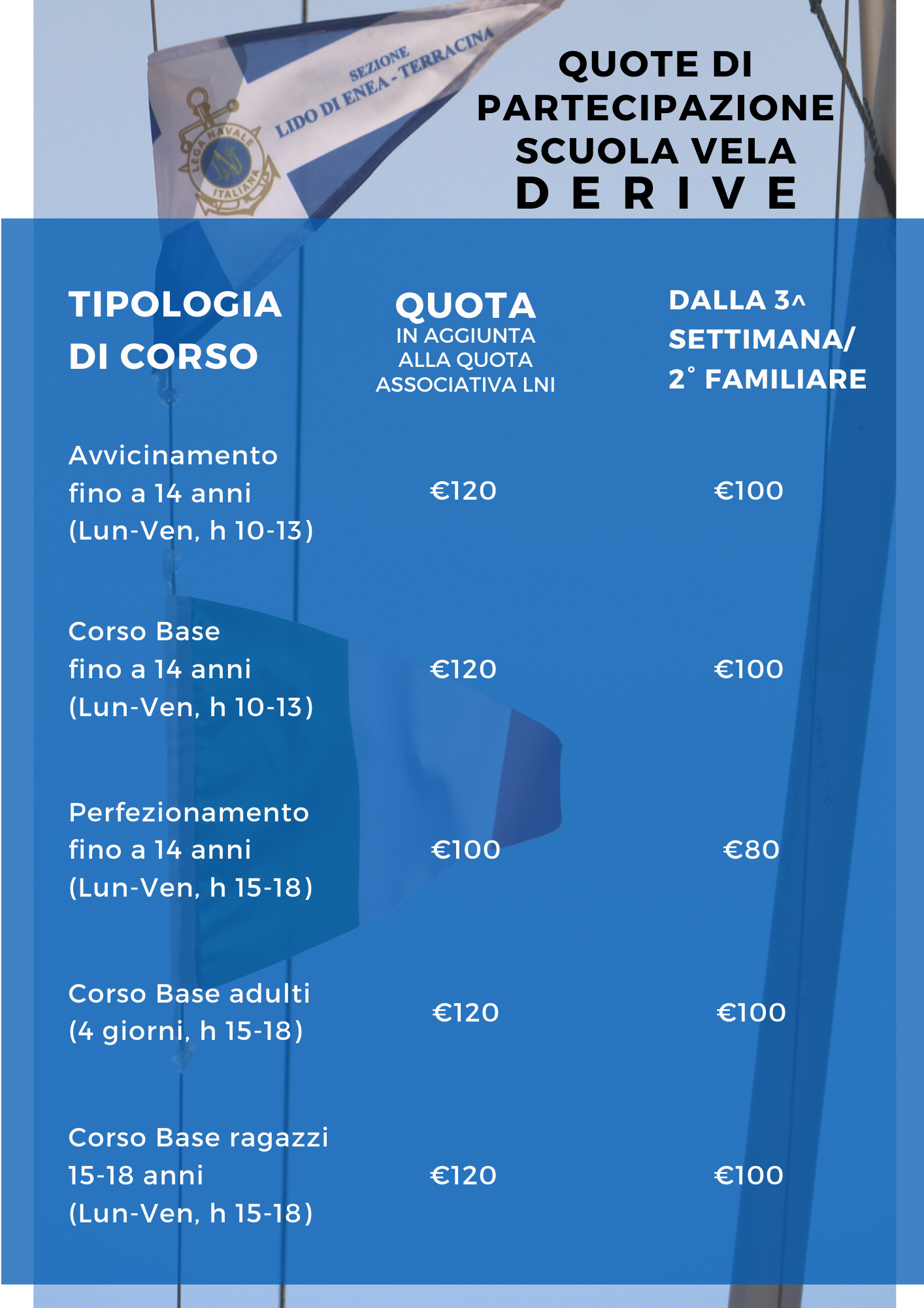 - Avvicinamento alla vela (la mattina, dal lunedì al venerdì)