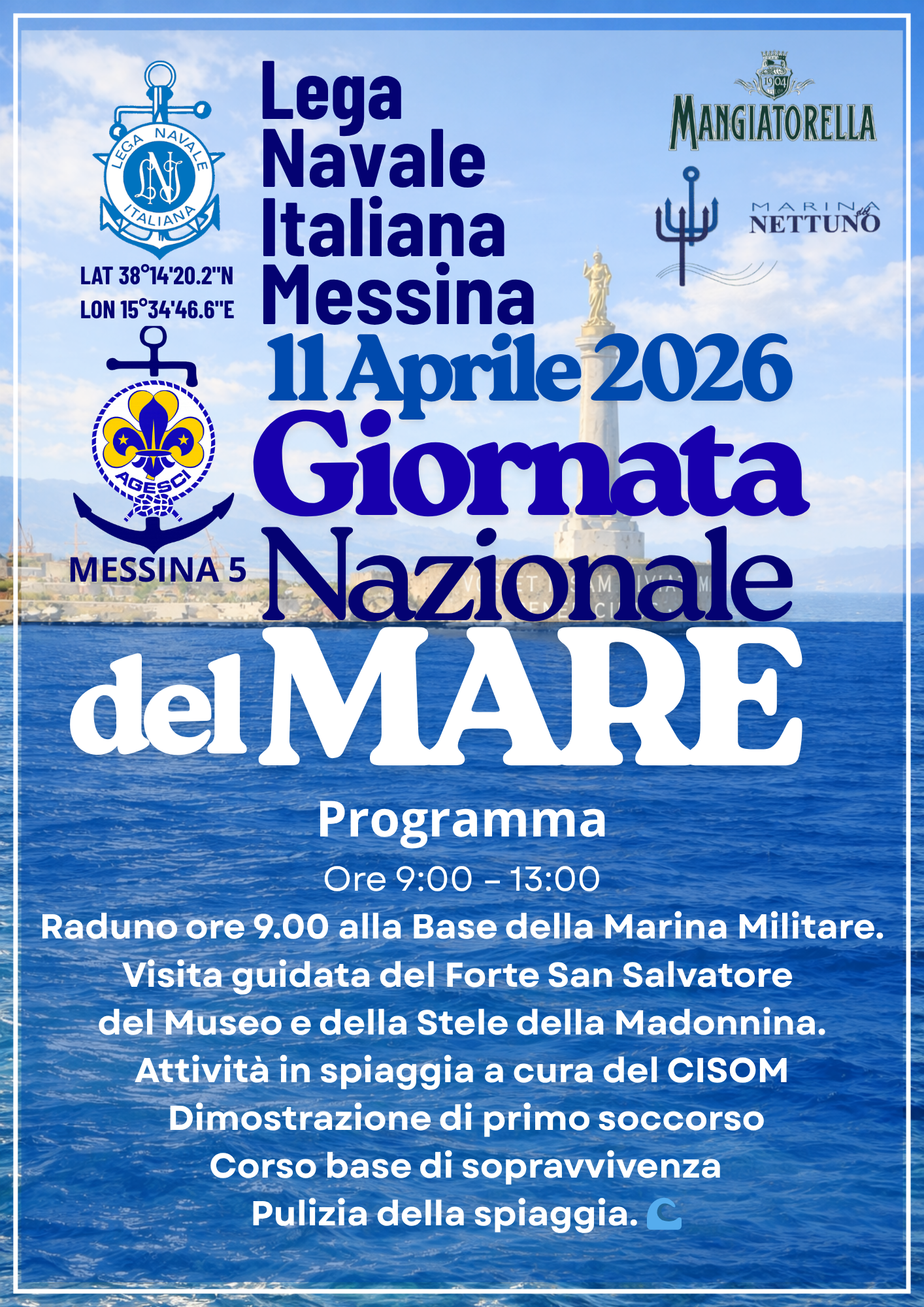 Dal 11/04/2026 al 11/04/2026 - La Lega Navale Italiana di Messina insieme al gruppo Agesci Messina 5 per celebrare la Gionata Nazionale del Mare