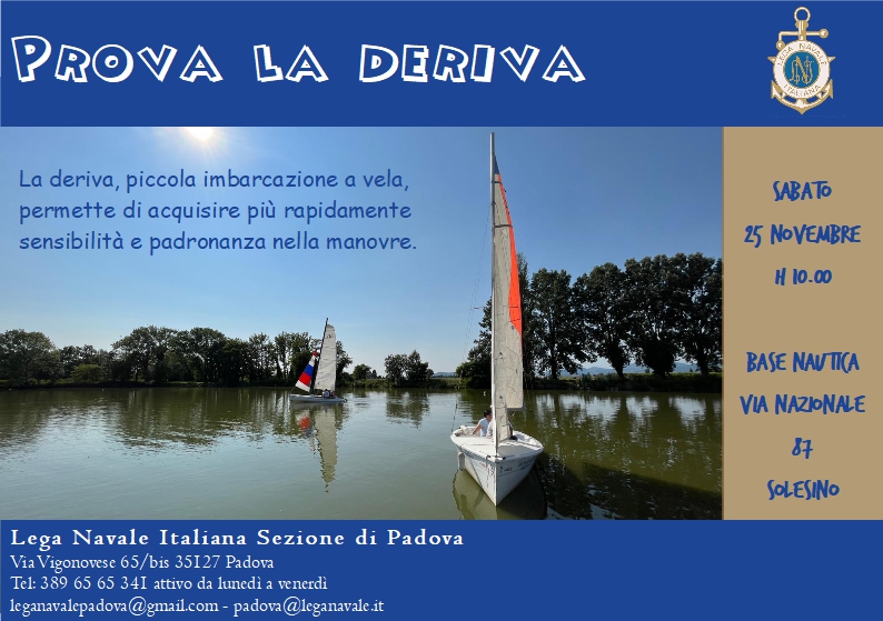Sabato 25 novembre vi invitiamo al laghetto Smeraldo di Solesino PD per un'esperienza in "deriva" ( piccole barche...ma comode) per comprendere meglio le manovre a vela.