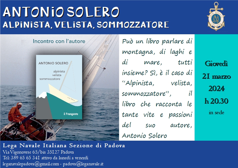 Antonio Solero, originario di Sappada, classe 1944 diventa alpinista e maestro di sci. Nel 1970 partecipa ad un esperimento tecnico-scientifico restando per un mese in un habitat subacqueo. Nel 1976 compie, in solitaria e senza motore, una prima traversata atlantica su una barca di sei metri autocostruita "Corto Maltese". Ritorna due anni dopo attraversando l’Atlantico da ovest ad est. Negli anni seguenti partecipa con successo a diverse regate transoceaniche. Ha all’attivo ben 14 traversate atlantiche. Skipper per quarant’anni, continua a lavorare come maestro di sci e naviga ancora oggi.
