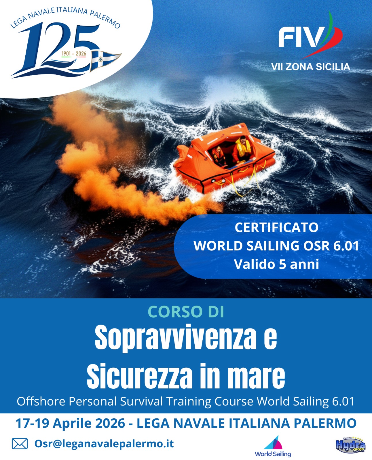 Offshore Personal Survival Training Course World Sailing 6.01 Dal 17 al 19 aprile 2026 si terrà a Palermo, presso i locali e la base nautica della Lega Navale Italiana Sezione di Palermo, il Corso di Sicurezza e Sopravvivenza a Mare WS OSR 6.01...