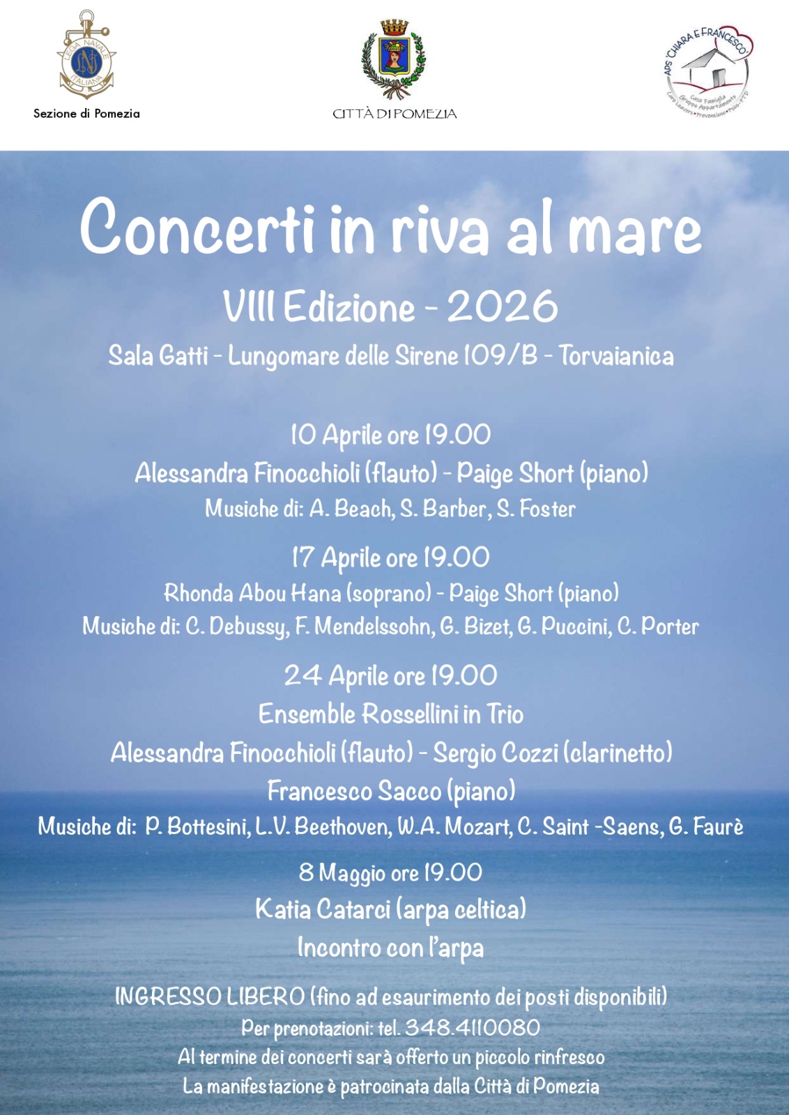 Torna la rassegna di "Concerti in riva al mare": quattro appuntamenti con la buona musica, il venerdì alle ore 19, a partire dal 10 Aprile. La manifestazione, organizzata in collaborazione con l'A.P.S. Chiara e Francesco...