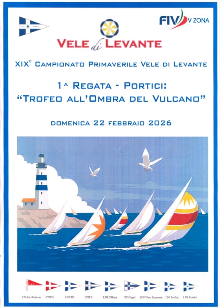 La Lega Navale Italiana Sezione di PORTICI organizza la 1° Regata del 19° Campionato Primaverile Vele di Levante del 2026. La competizione si disputerà nelle acque antistanti il litorale di PORTICI