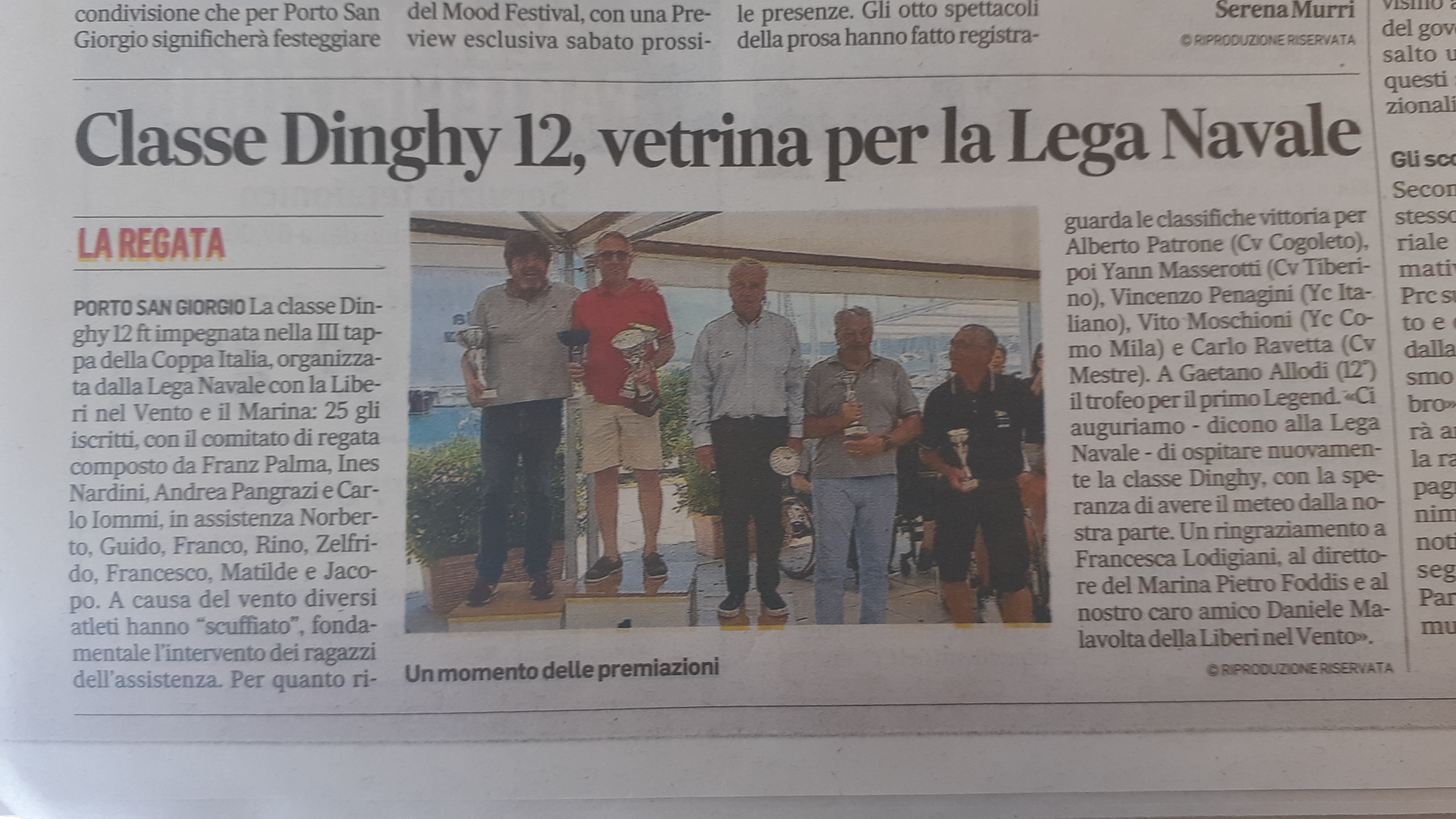 Il fine settimana appena terminato ha visto la classe Dinghy 12 ft impegnata nella 3^ tappa della Coppa Italia, tappa che abbiamo avuto l'onore di organizzare con la collaborazione dell'ASD Liberi nel Vento e del Marina di Porto San Giorgio.