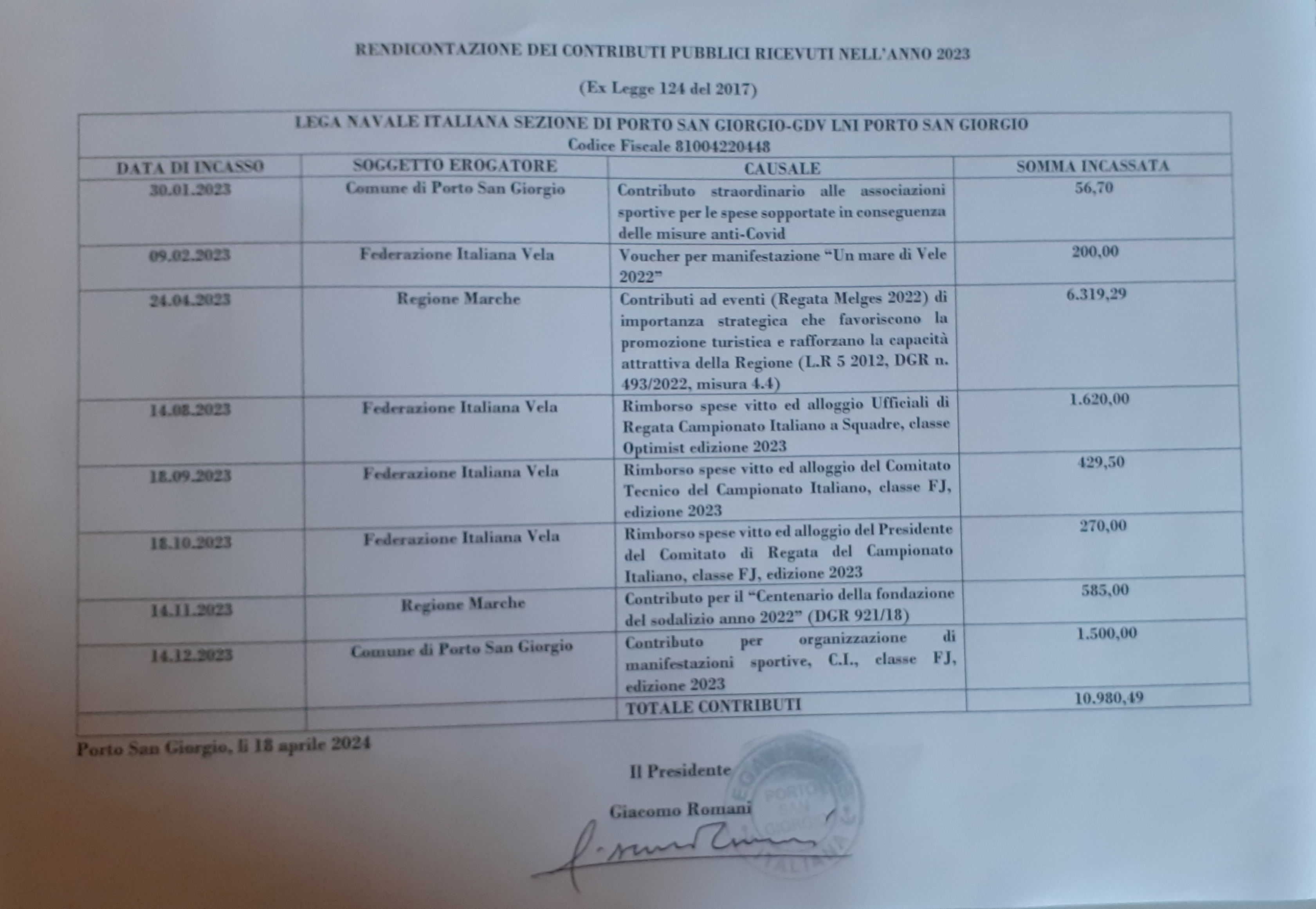 RENDICONTAZIONE DEI CONTRIBUTI PUBBLICI RICEVUTI NELL’ANNO 2023