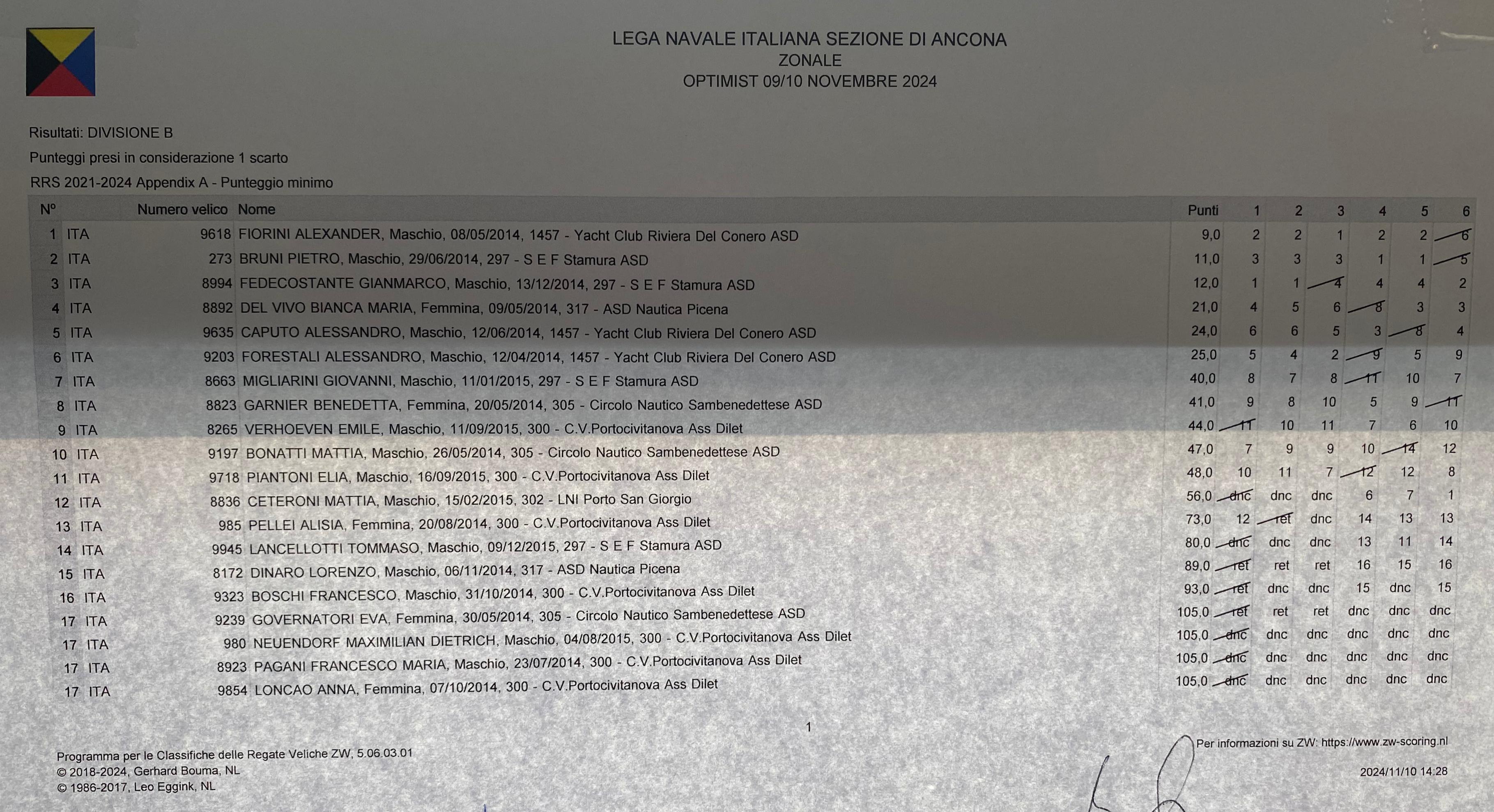 Nel fine settimana del 9 e 10 novembre 2024 si è svolta una regata zonale, classe optimist, circolo organizzatore i nostri "cugini" della L.N.I. di Ancona.