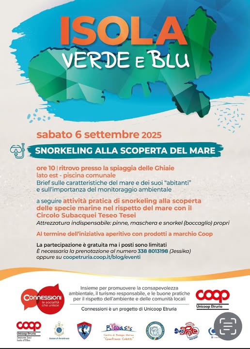 L'appuntamento è c/o la Spiaggia delle Ghiaie alle ore 10.00 un attività pratica di snorkeling alla scoperta delle specie marine nel rispetto del mare con il Circolo Subacquei Teseo Tesei , un Brief sulle caratteristiche del mare e dei suoi abitanti e sull'importanza del monitoraggio ambientale.