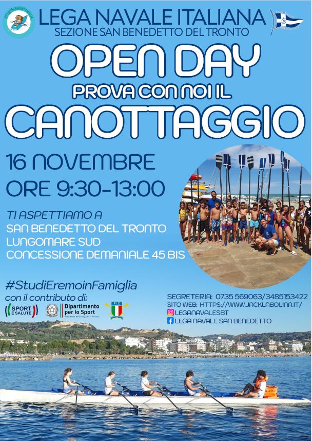 La nostra Sezione organizza il 16 Novembre 2025 presso il Centro Sportivo LNI sul Lungomare Sud di San Benedetto del Tronto Concessione 45 bis un giornata di Open Day Canottaggio per permettere a ragazzi ed adulti di poter provare questa disciplina.