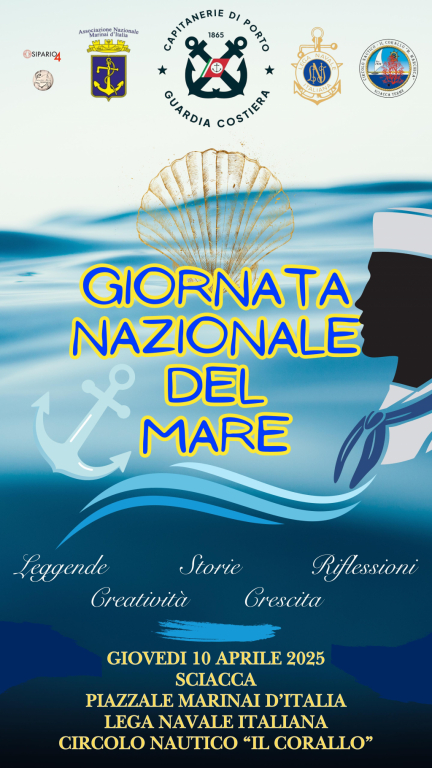 Durante la "Giornata Nazionale del Mare", svoltasi Giovedì 10 Aprile 2025, soni stati presenti i rappresentanti istituzionali del Comune di Sciacca, della Capitaneria di Porto, della LNI di Sciacca, dell’Associazione Nazionale Marinai d'Italia. La giornata ha avuto lo scopo di sensibilizzare i giovani attraverso attività e momenti di confronto organizzati in collaborazione con l'Ufficio Circondariale marittimo di Sciacca, al fine di sviluppare il concetto di "cittadinanza del mare" e rendere gli studenti cittadini "attivi" del mare.