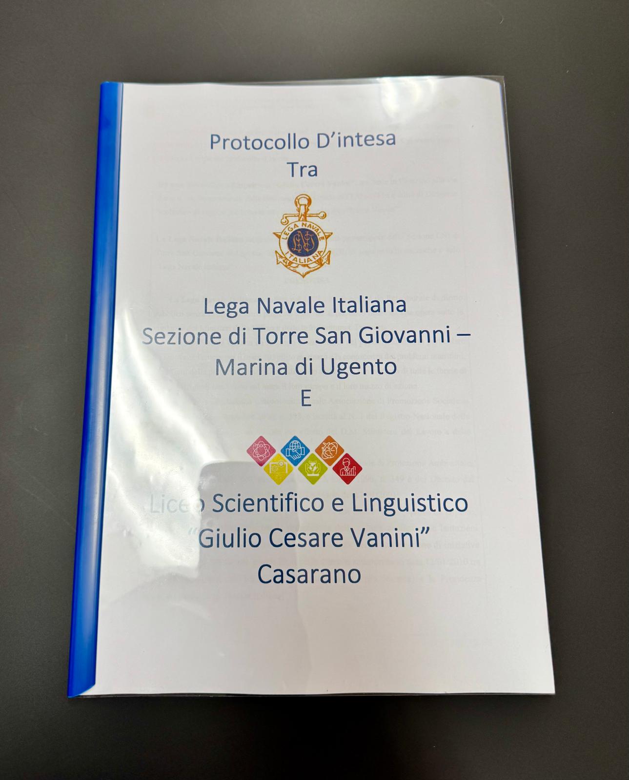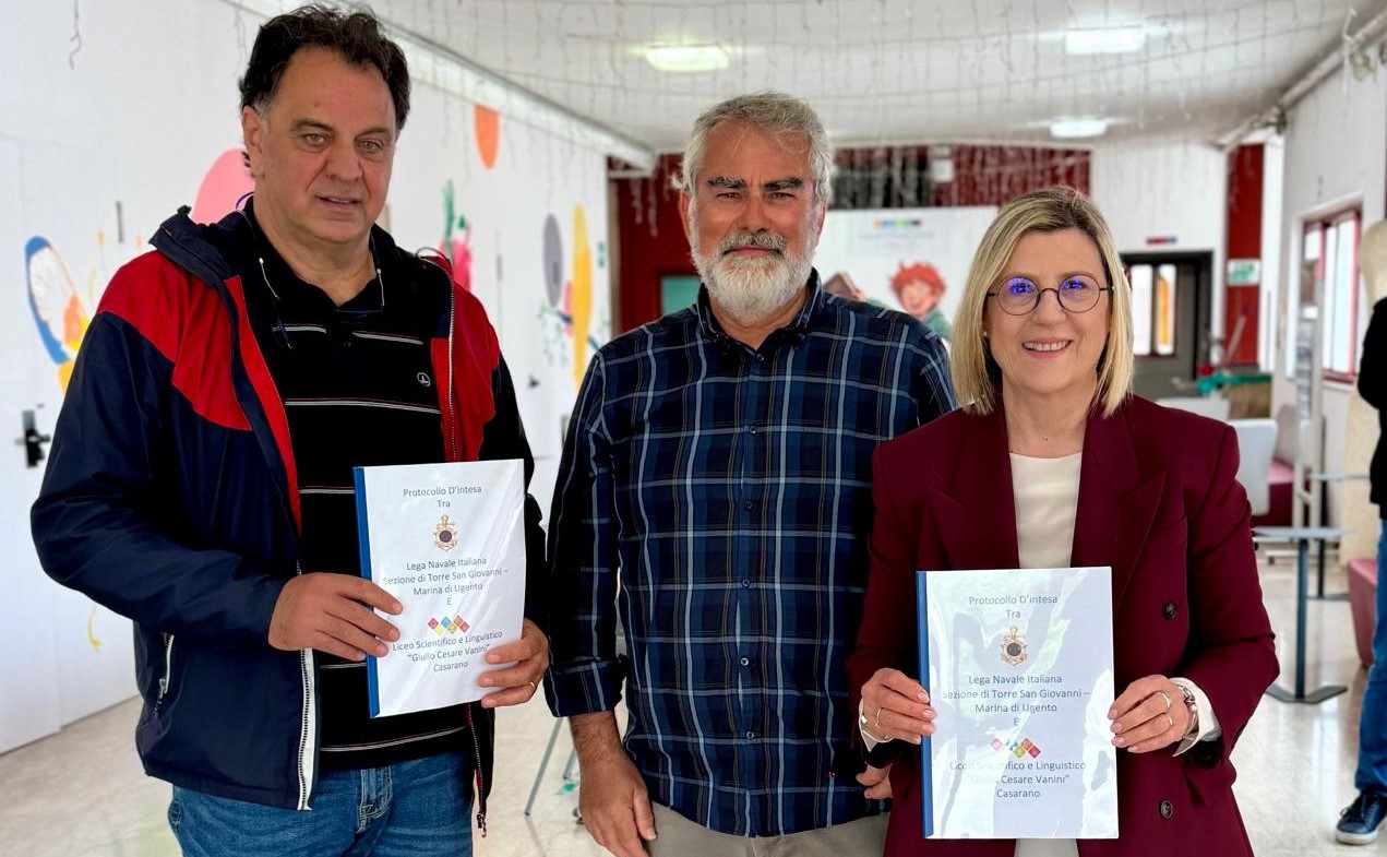Casarano, 15 aprile 2026 – È stato sottoscritto in data odierna, presso la sede del Liceo Scientifico e Linguistico “Giulio Cesare Vanini” di Casarano, il Protocollo d’Intesa tra l’Istituzione scolastica e la Lega Navale Italiana – Sezione di Torre San Giovanni – Marina di Ugento.