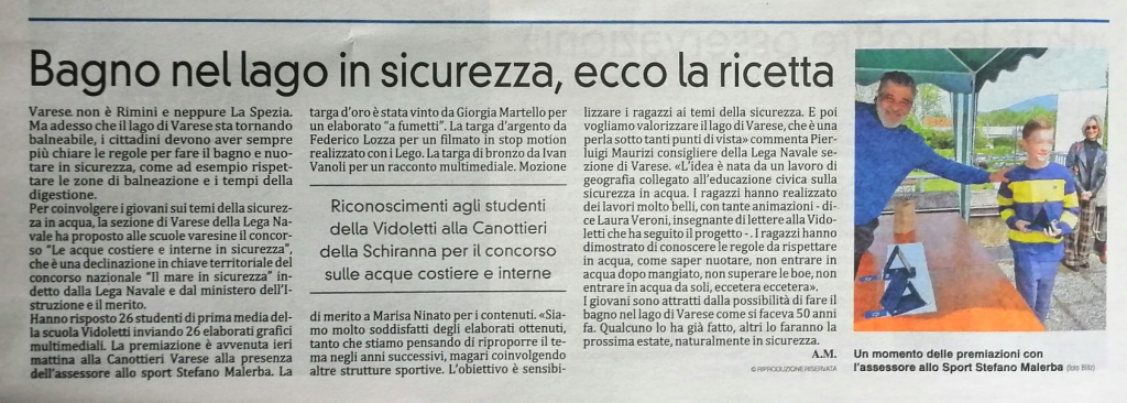 Evento a cui è intervenuto l'Assessore allo sport del Comune di Varese che ha premiato i ragazzi di scuola media vincitori del concorso. Si è tenuta anche la mostra dei lavori vincitori.