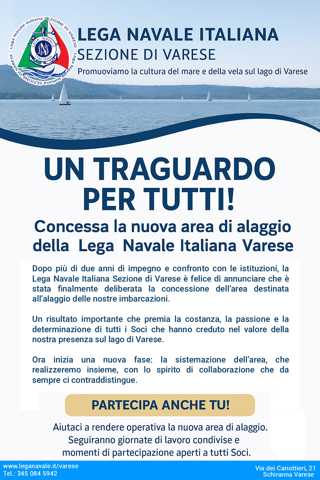 Sede Nautica: Via canottieri, 21 - 21100 - VARESE (VA)