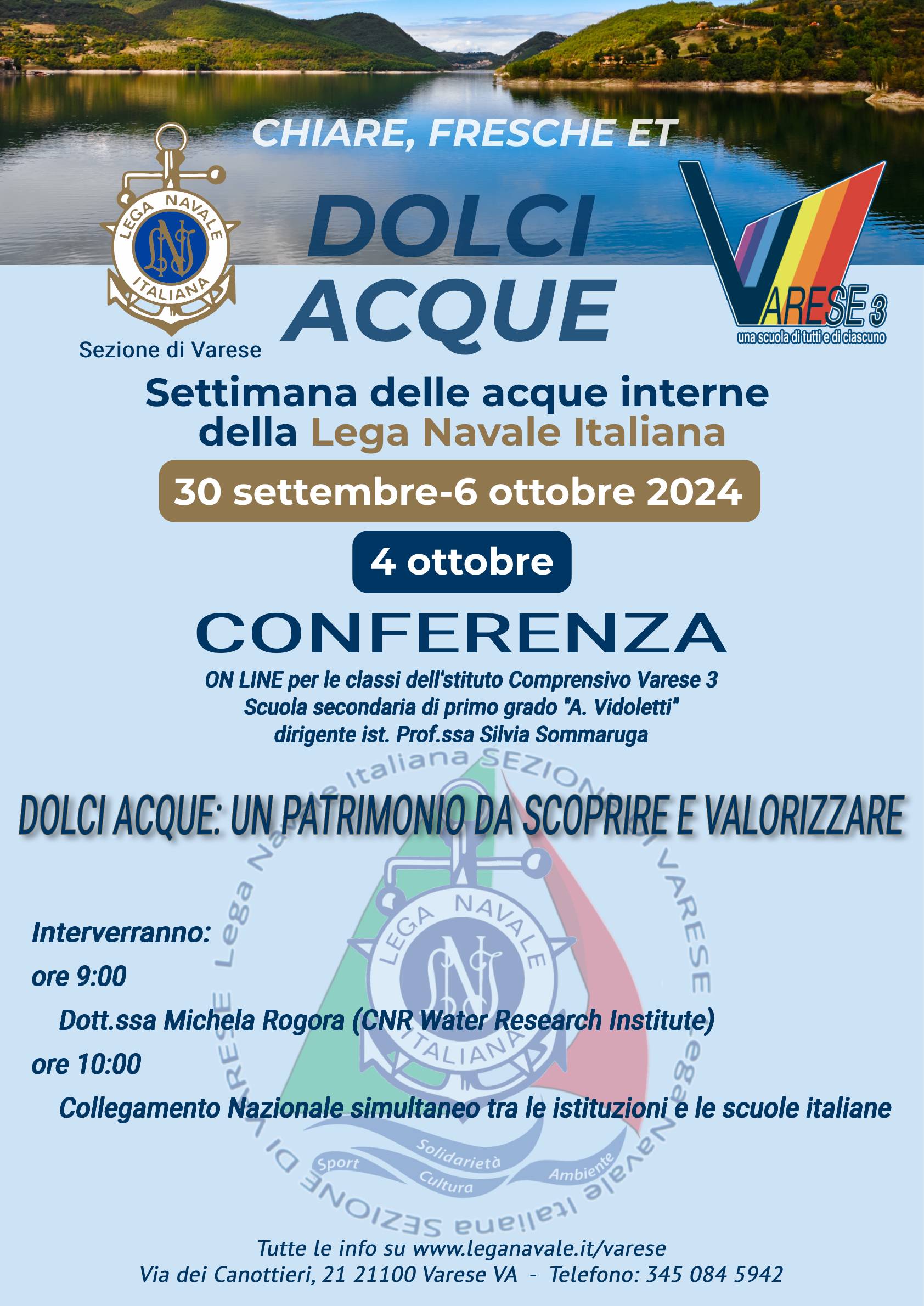 In occasione del 4 ottobre, giorno in cui si festeggia il patrono d'Italia S. Francesco, la Sezione di Varese della Lega Navale Italiana, in collaborazione con la presidenza nazionale dell'associazione, con le scuole di ogni ordine e grado, organizza l’iniziativa nazionale “Dolci Acque: un patrimonio da scoprire e valorizzare”.